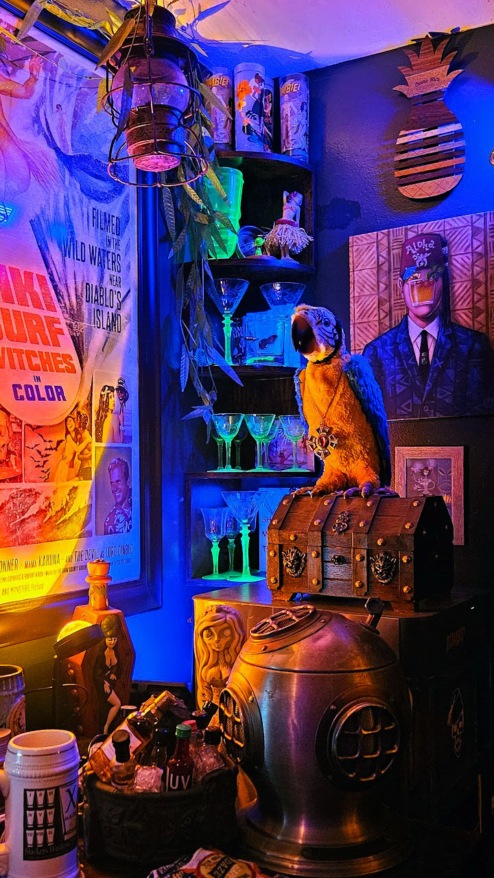 This here website, hand crafted by a bitter old man, serves as somewhat of a showcase for a few of my projects (which one might call eclectic) and varied other interests. Here you will find some of my crappy artwork, bad music, and mostly failed renditions of ideas I had. There is a section dedicated to my homemade hot sauces for some reason and what you can expect if you ask for a bottle. There is a page on my basement tiki bar, where if you come by for a visit, you can experience a drink or ten. There are pages on collecting physical media, my book, and whatever else I ended up putting in here. The whole site will always be development. If I sent you here, it was for a reason. Take a look and see if you can find whatever it was I was talking about.